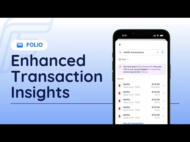 Access all your transactions across multiple accounts in one centralized location within your Folio. No more jumping between bank accounts or credit cards to see the full picture.